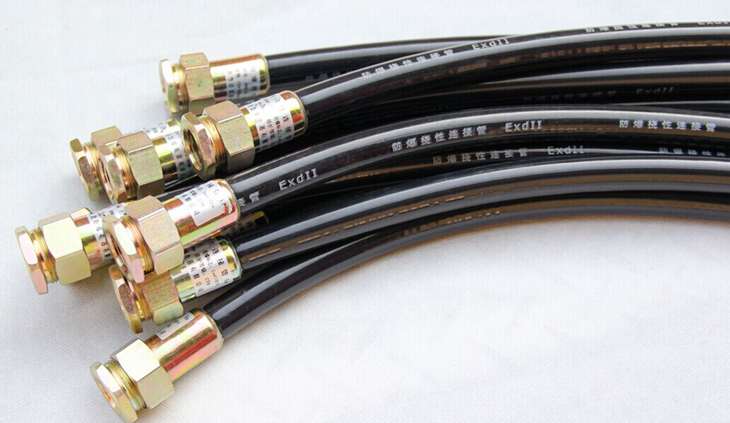 防爆連接管分3種材質(zhì)1.不銹鋼。2.鋼絲編制(外部像汽車輪胎,中間夾層有縱橫交錯編織的鋼絲網(wǎng))3.橡膠材質(zhì)。